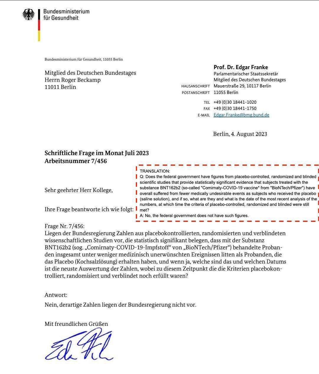 Anfrage von Roger Beckamp (Mitglied des dt. Bundestages) an den Bundestag ob Cormirnaty als „Impfstoff“ überhaupt gewirkt hat.